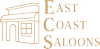 Logo for East Coast Saloons featuring a stylized outline of a saloon building next to the text 'East Coast Saloons' in brown.